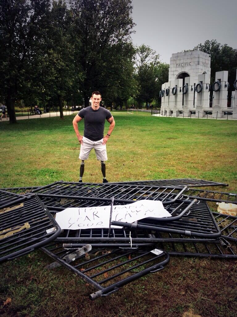 A Marine veteran named Johnny "Joey" Jones who lost both legs in Afghanistan helped breach the Barrycades!